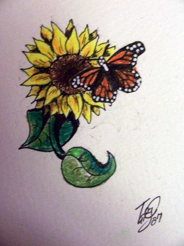 Tattoo Butterfly On Sunflower By Nonnyarie On Deviantart